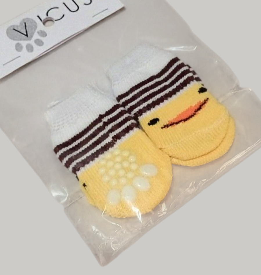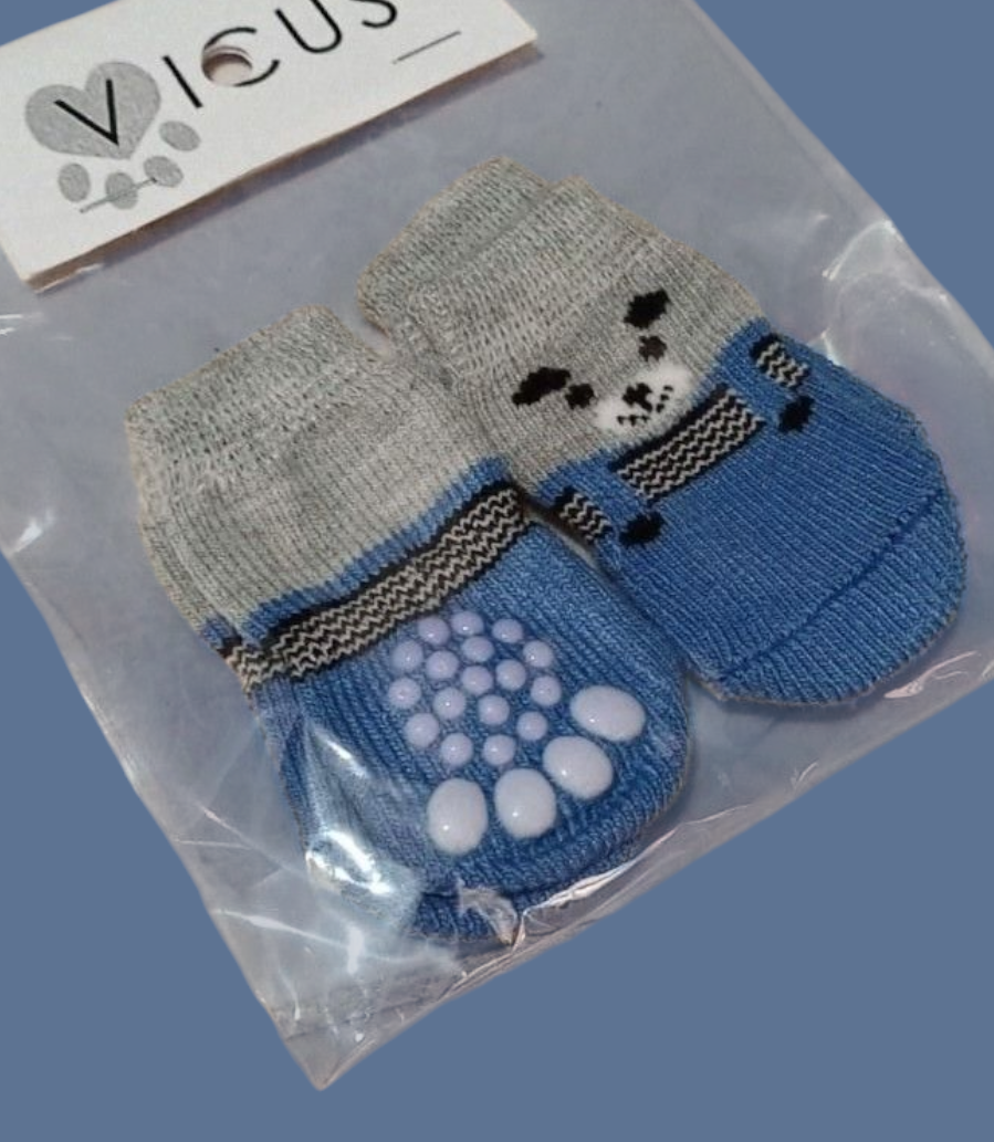 Las medias están diseñadas con materiales suaves y elásticos que se adaptan perfectamente a sus patitas. Vienen con suela antideslizante para evitar resbalones en pisos lisos y proteger sus almohadillas del frío o superficies calientes.