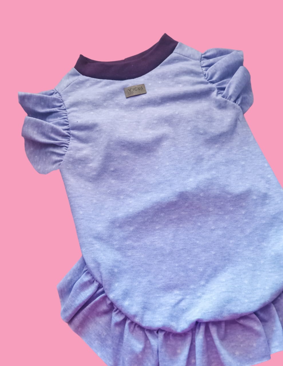 Luce frescura y estilo con nuestra musculosas lila con mangas y contorno con vuelos. Ideal para los días soleados, esta musculosa mantendrá a tu mascota cómoda y a la moda ???✨