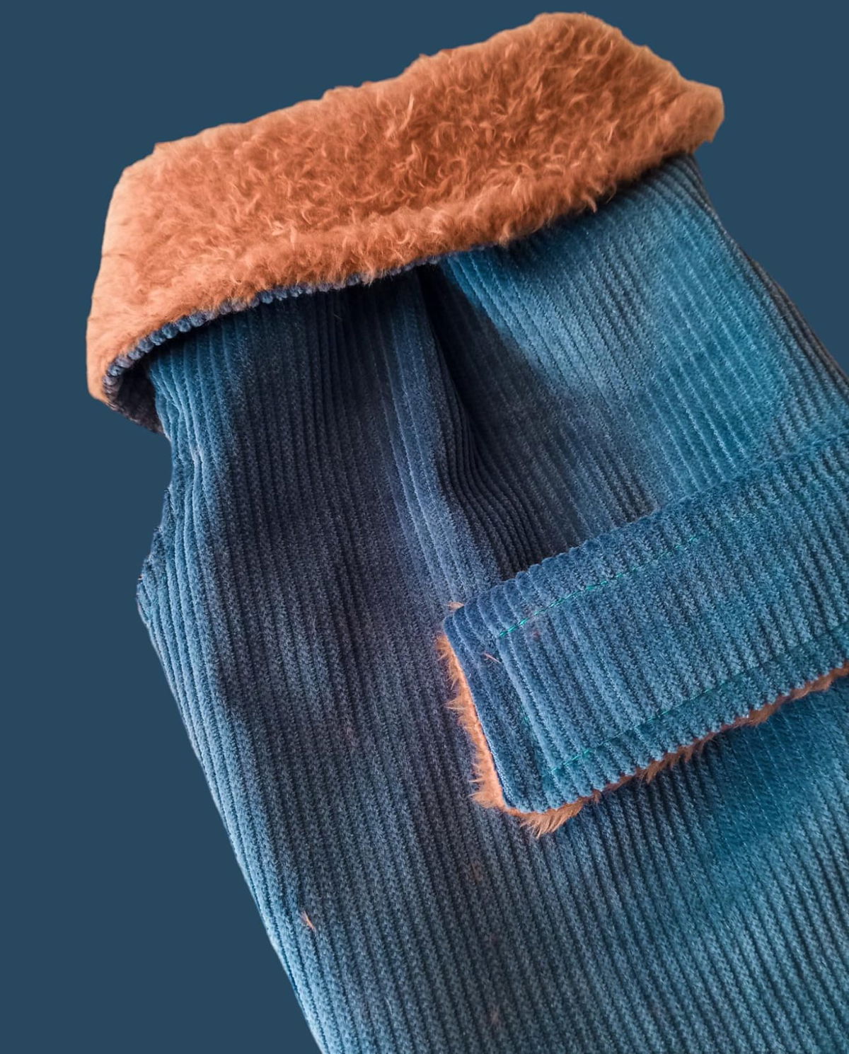 Mantén a tu mascota cálida y con estilo con nuestros sacos con interior en corderito. Este chaleco es exterior de paño/corderoy con interior corderito color camel. Perfecto para brindar comodidad y un toque de elegancia a los días muy frescos.