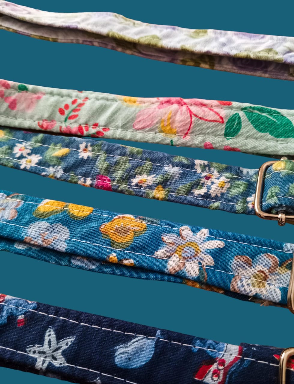 Collares de tela de algodón regulables, no son de tire, disponen de la media luna para la placa.